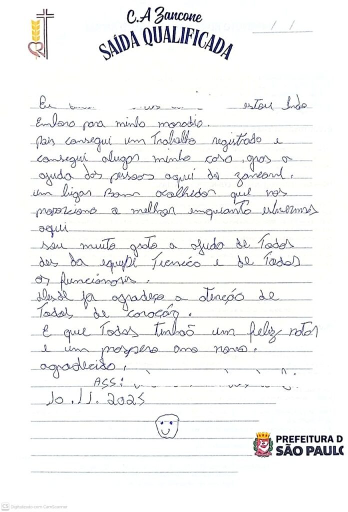 Neste fim de ano, é tempo de celebração e reflexão quanto as histórias que passaram pelas do paredes do Centro de Acolhida Zancone, instituição responsável pelo acolhimento e projeto de vida de 200 homens em situação de extrema vulnerabilidade social e econômica. O objetivo dessa luta está respaldado em duas prerrogativas: acesso a direitos e a segundas chances (terceiras, quartas e quintas chances se necessárias). A equipe de técnicas assistentes sociais, psicólogo, assistente administrativo, gerência, orientadores socioeducativos, operacionais de limpeza e cozinha permanecem se empenhando no processo de reinserção social e profissional, objetivando acolher e desenvolver junto aos atendidos, algumas noções básicas de autonomia diante as próprias adversidades.