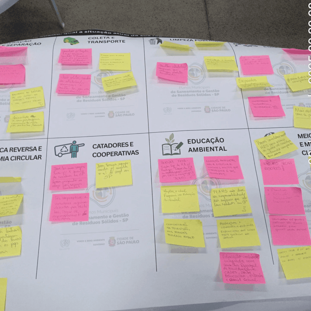 A oficina do Plano de.Gestão de Resíduos Sólidos da região oeste para mapear questões da Lapa, Butantã e Pinheiros, aconteceu no dia 20/08 no CEU Jaguaré conduzido pela @spregula e @onuhabitatbrasil e acompanhado pela @svmasp .